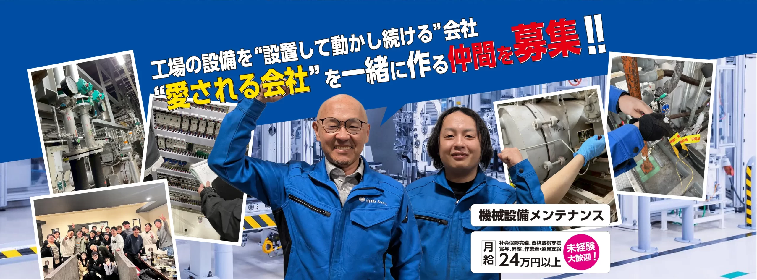 | 事業内容 | 機械器具設置工事業 各種機械器具の修理・保守及びメンテナンス業務 |